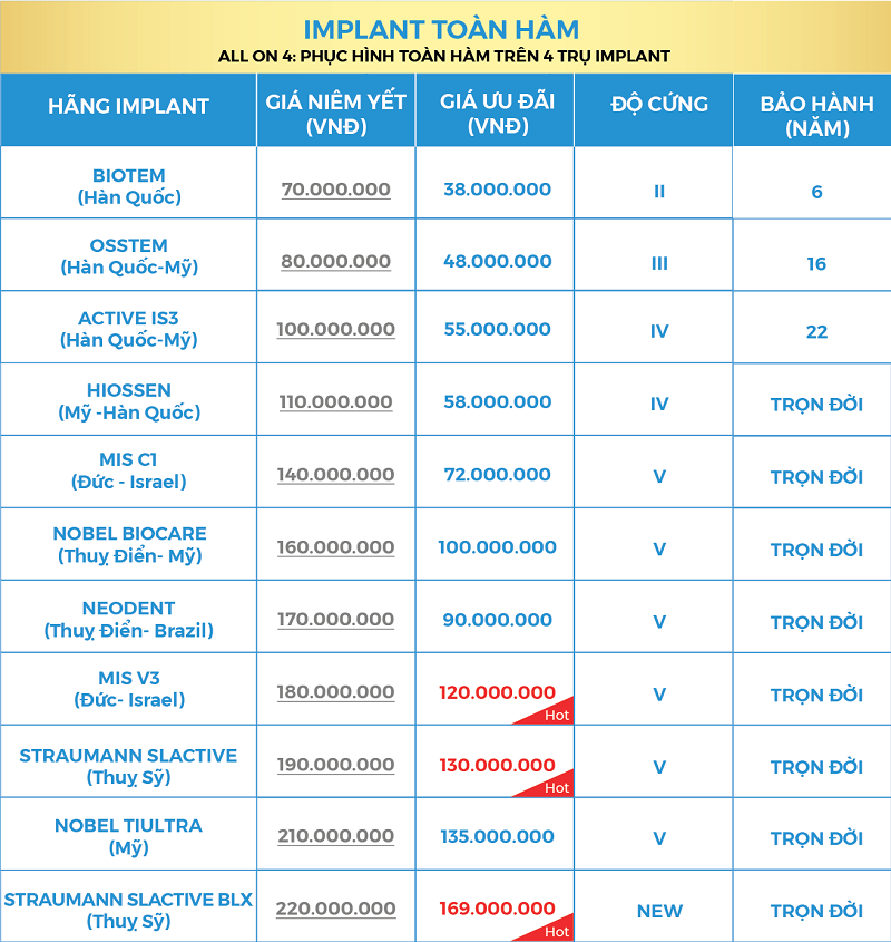 - Trồng răng Implant All on 4 chỉ từ 38 TRIỆU (tặng 12 răng sứ)