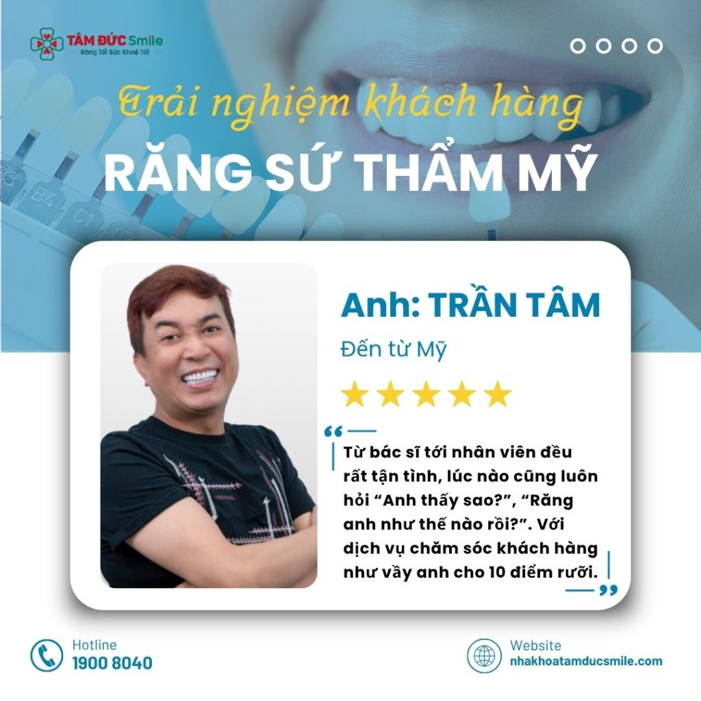 Anh Tâm đặc biệt ấn tượng với sự chuyên nghiệp và ân cần của mọi người tại Tâm Đức Smile.