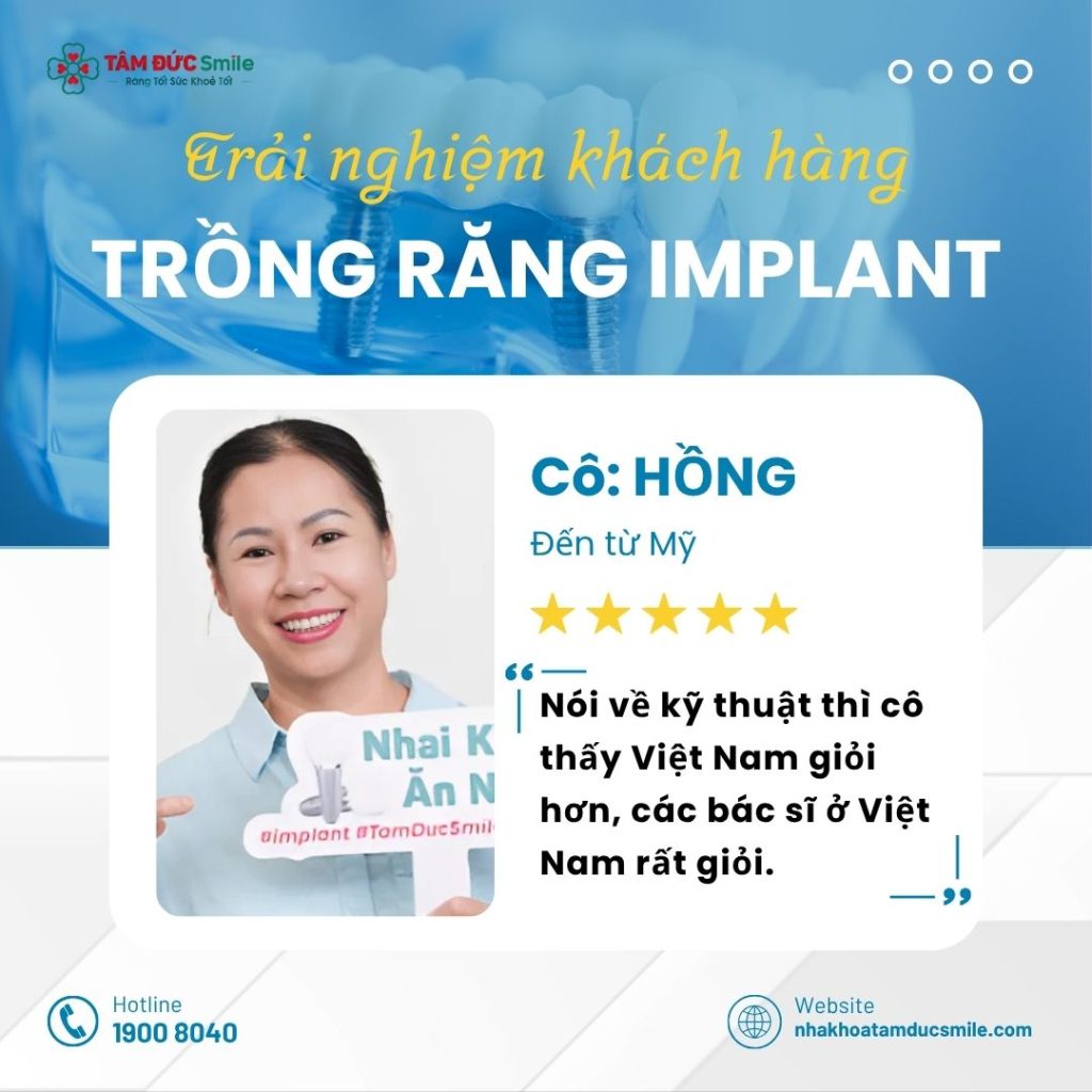 Đánh giá thực tế của cô Nguyễn Thị Hồng sau khi trồng răng Implant tại Tâm Đức Smile: