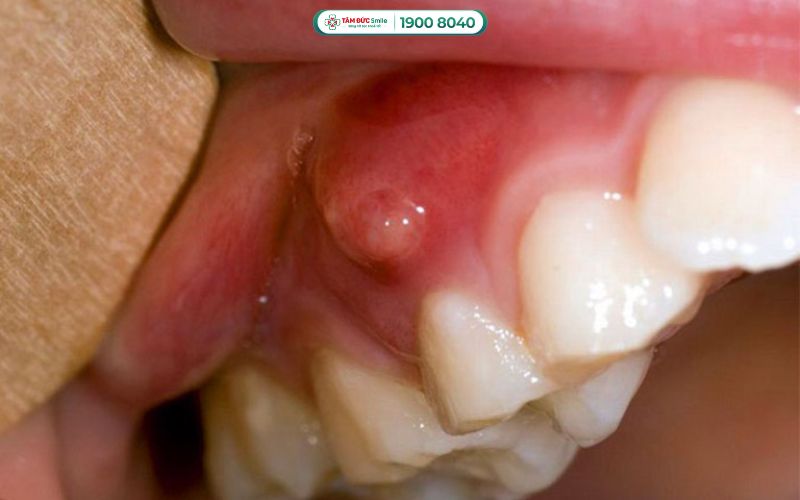 - Sưng đỏ nướu quanh răng, có thể nổi rõ như một nốt mụn trắng (mủ)