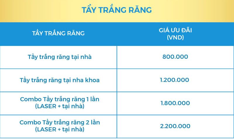 Lưu ý: Mức giá có thể chênh lệch tùy vào tình trạng răng, nhu cầu làm trắng và chính sách ưu đãi của từng phòng khám.